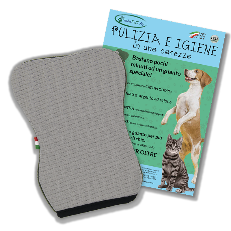 SalusPetAg – Guanto Bifasico per pulizia e igiene di pelo e pelle con fibra d’argento