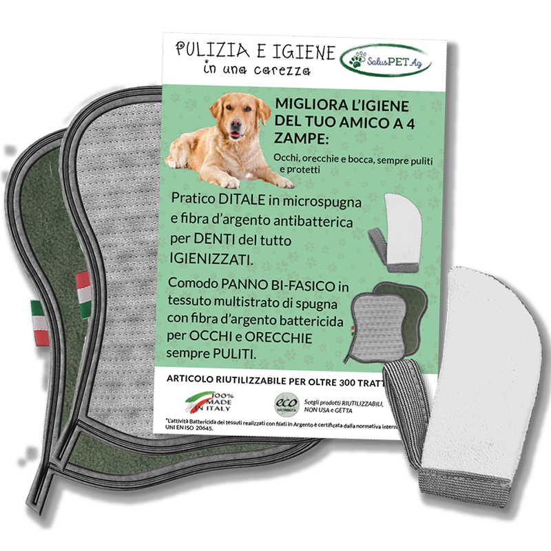 SalusPetAg – Panno Bifasico per occhi e orecchie e Ditale per l’igiene orale