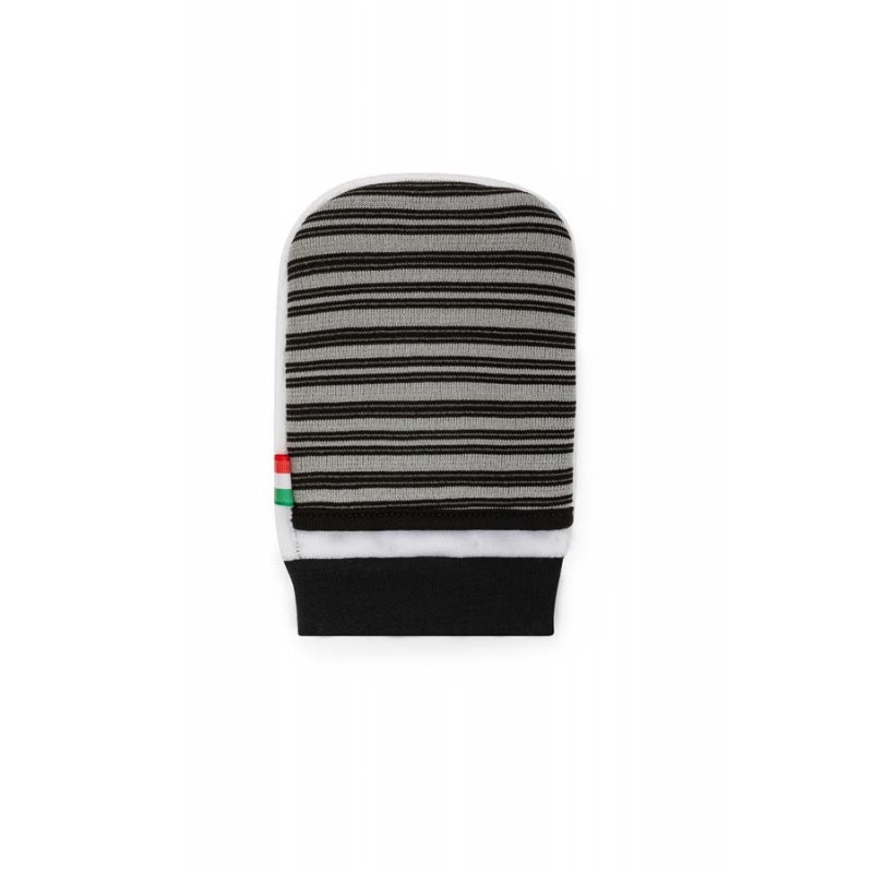Lati 1 e 2 (bianco) realizzati in Spugna Multibava + Fibra SILBLACK (ARGENTO/CARBONIO), lato 3 (nero) realizzato in SPUGNA MULTIFIBRA ARGEMBRA (ARGENTO/AMBRA), con proprietà detergenti, dermo-protettive ed auto-igienizzanti, lato 4 (bicolore) in esclusivo TESSUTO MULTIFIBRA (POLIPROPILENICA e ARGEMBRA) con proprietà anti-batteriche/purificanti e dermo-rigeneranti/esfolianti.