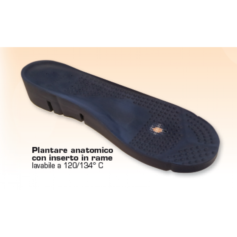 Plantare di ricambio per zoccolo sala operatoria. Comodo plantare di ricambio per lo zoccolo da sala operatoria PodoMed. Supporto podologico anatomico con inserto in rame PodoMed. Lavabile a 120/134° C.